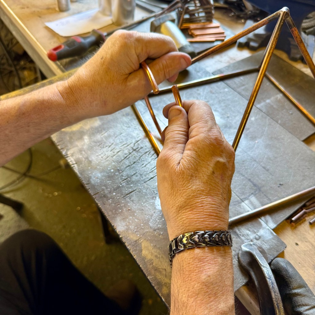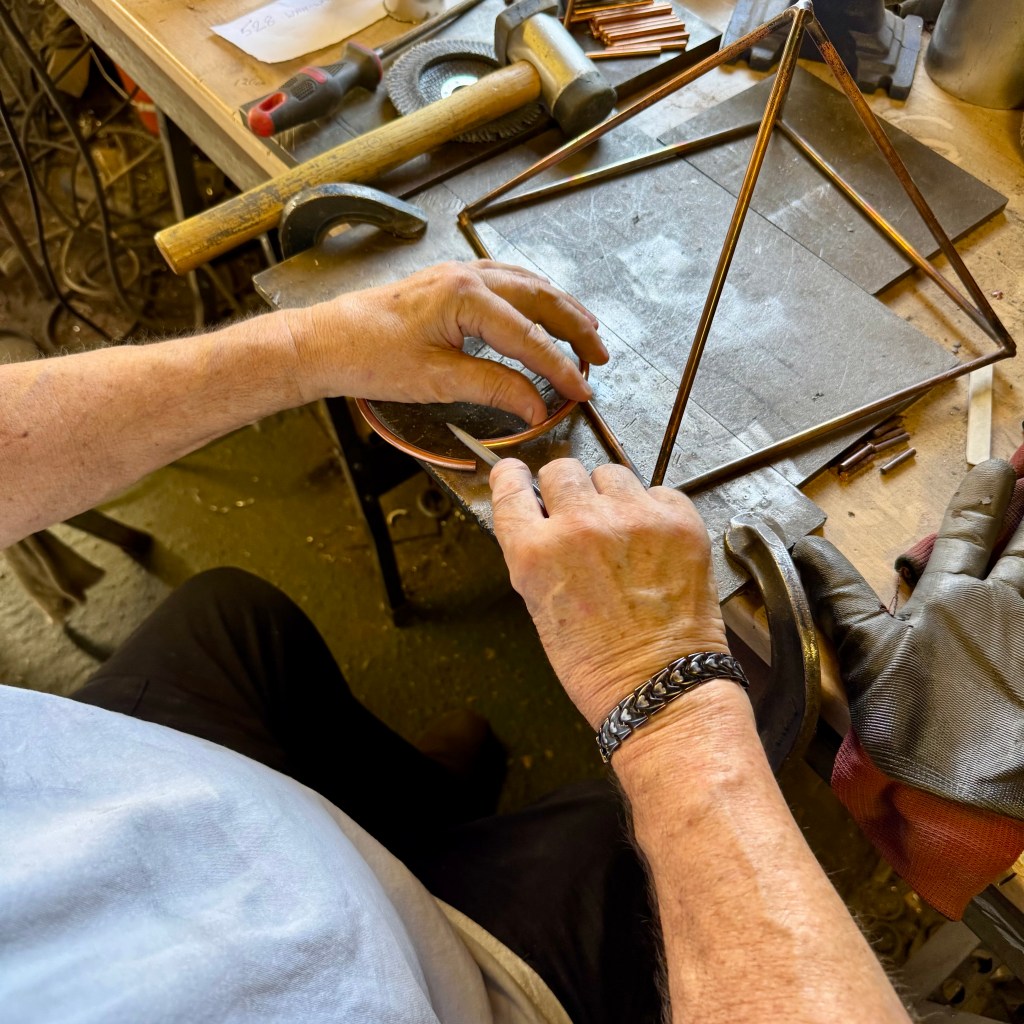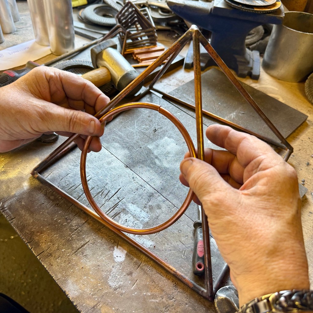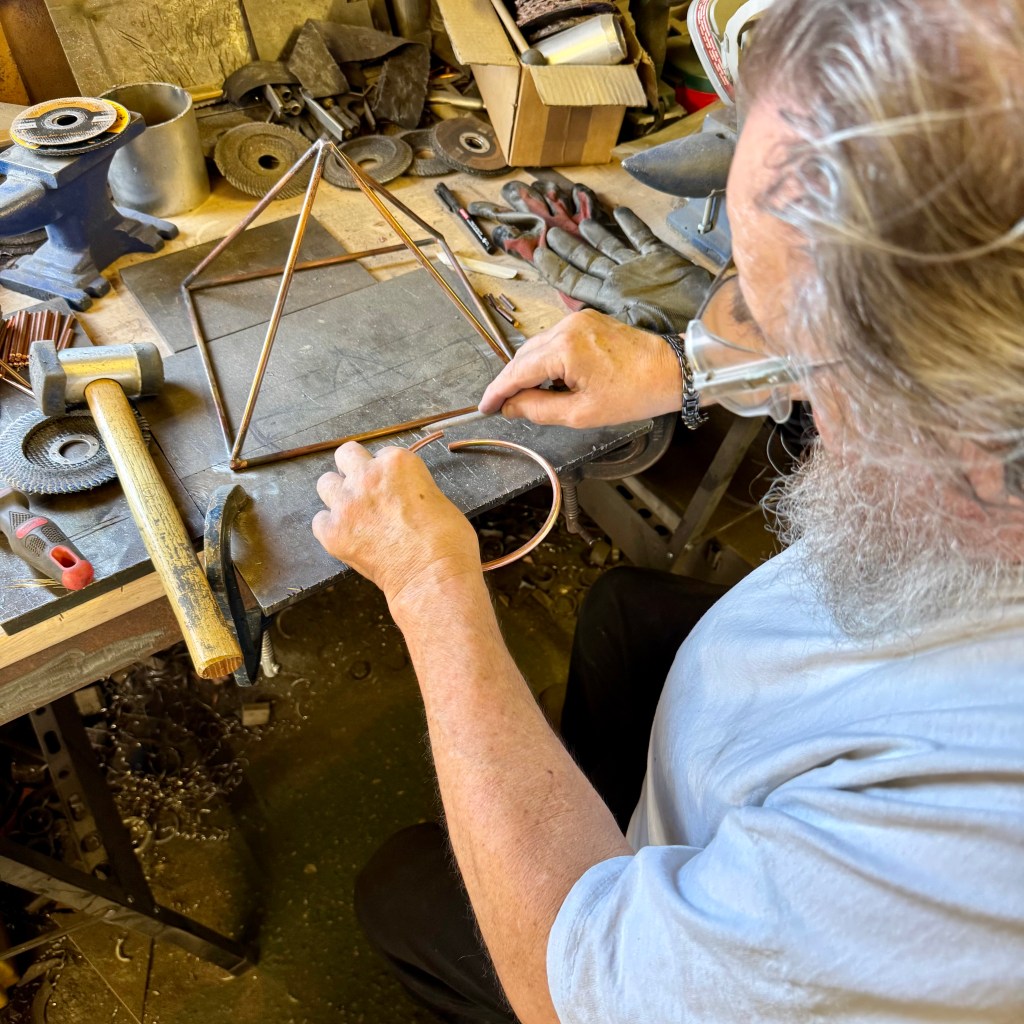 It would be simple to make ideally looking instruments, with the brazing and edges ground, filed, and polished to a diamond-like finish. Richard knows, from years of experience crafting these wonderful, harmonious instruments, that each one must be unique and retain its own identity. To achieve this, Richard ensures every piece is different—no two geometric harmonisers are precisely alike. Your harmoniser is the result of hours of selection, work, and consideration. Do not be fooled by the simplicity of some pieces—Richard’s creative intuition is within every item. Remember, each part of the harmoniser is accurately measured; while assembly may result in slight dimensional differences, the parts are carefully gauged to ensure the finished item is harmonically balanced. When finished, the harmoniser is placed in a sound bath to make it vibrationally neutral and ready for its new owner.
